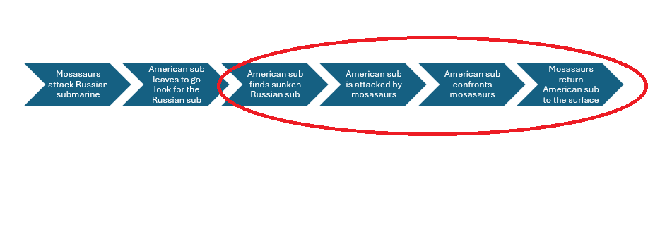 On top of that, I’m going to move the setting from the USS Arizona (which, spoiler alert, will still appear in the novel) to an undersea habitat similar to the novels I’ve used for inspiration – Sphere and Deep Storm. This will allow me to focus less on being technically accurate as to how a nuclear fast-attack boat operates and certain military aspects to really digging into the technology and science and, of course, the mysterious mosasaurs that keep attacking American and Russian submarines. There will still be a military presence on the habitat but that’ll be more of a secondary antagonist than part of the primary setting.