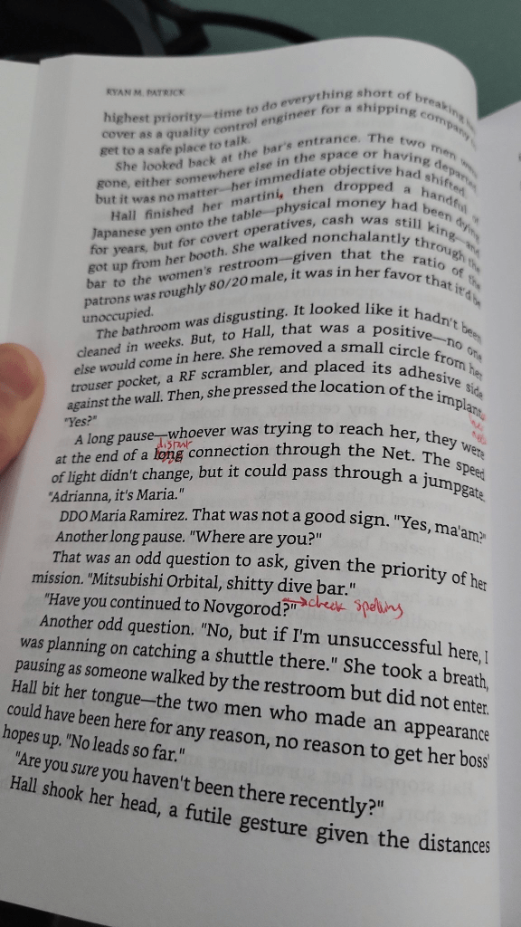 Then, once I get approval, I’ll create an Amazon listing (60-90 days away) and order a paperback proof. That one I’ll mark up like I did The Europan Deception below and then go through the final edits before I let it go live.